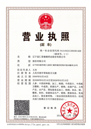 遼寧益仁堂健康藥業(yè)股份有限公司成立于2006年,注冊(cè)資本1060萬(wàn)元,占地面積23677平方米。企業(yè)走公司加農(nóng)戶加合作社加生產(chǎn)銷售為一體的產(chǎn)業(yè)化路線。現(xiàn)擁有有機(jī)人參基地一萬(wàn)一千兩百多畝。公司前身“益仁堂”參號(hào)是由公司董事長(zhǎng)王杰先生祖輩王寶善于清宣統(tǒng)二年(1910年)創(chuàng)辦的老字號(hào)企業(yè)。“益仁堂”寓意“